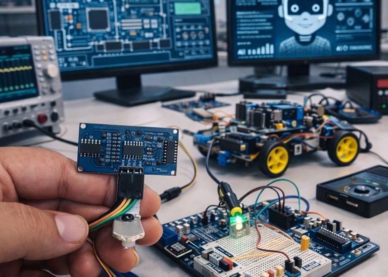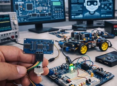 Dedicated setups for learning artificial intelligence, sensors, circuits, and automation through structured experiments and projects.