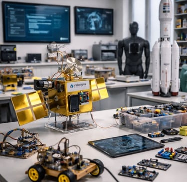 Hands-on space science projects that introduce students to satellite systems, rocketry, and aerospace engineering in a simple and engaging way.